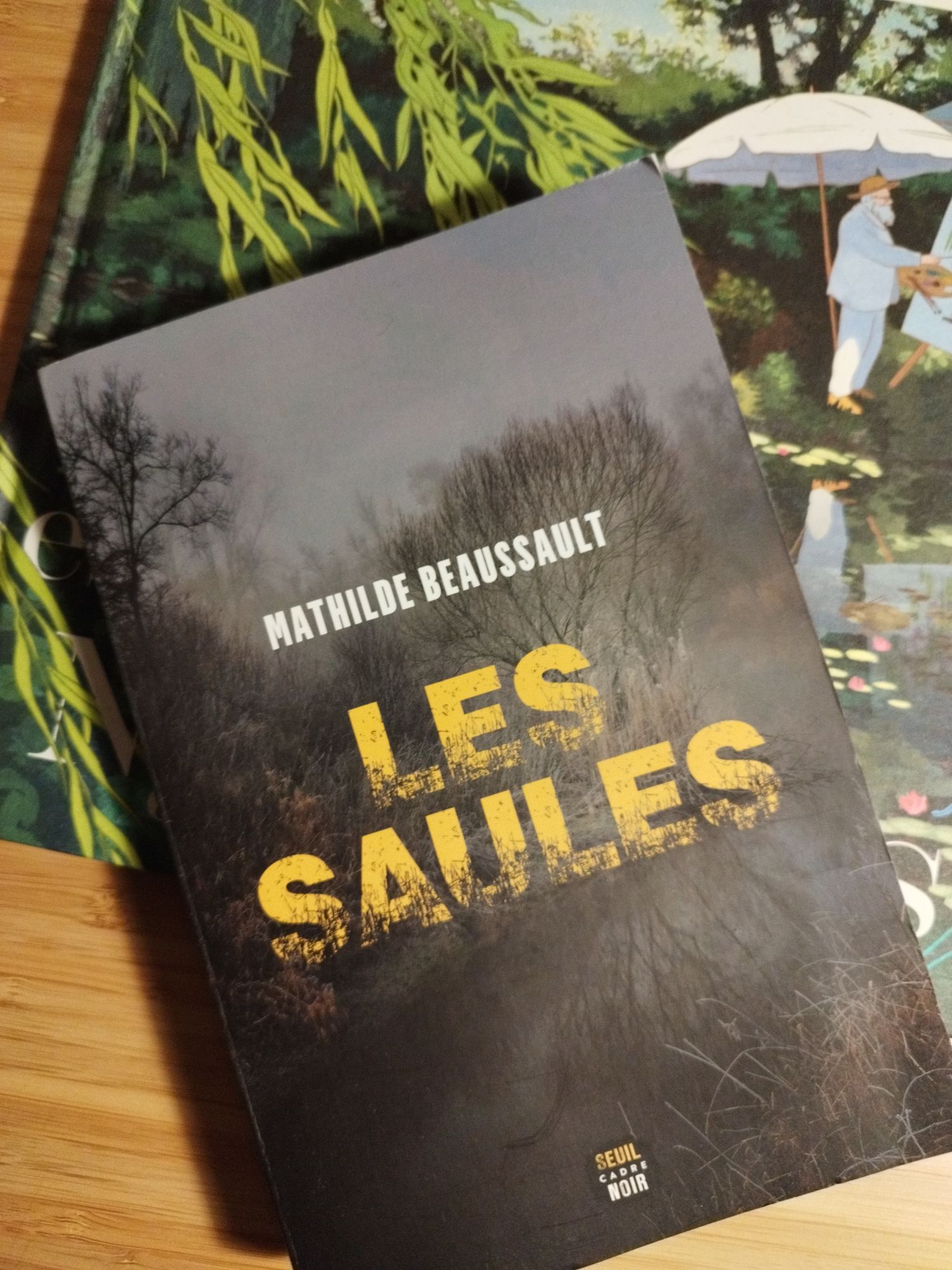 L’album sous le livre est le magnifique la petite espionne des Nymphéas de Béatrice Fontanel illustré par Alexandra Huard chez Seuil jeunesse-Musée de l’Orangerie.